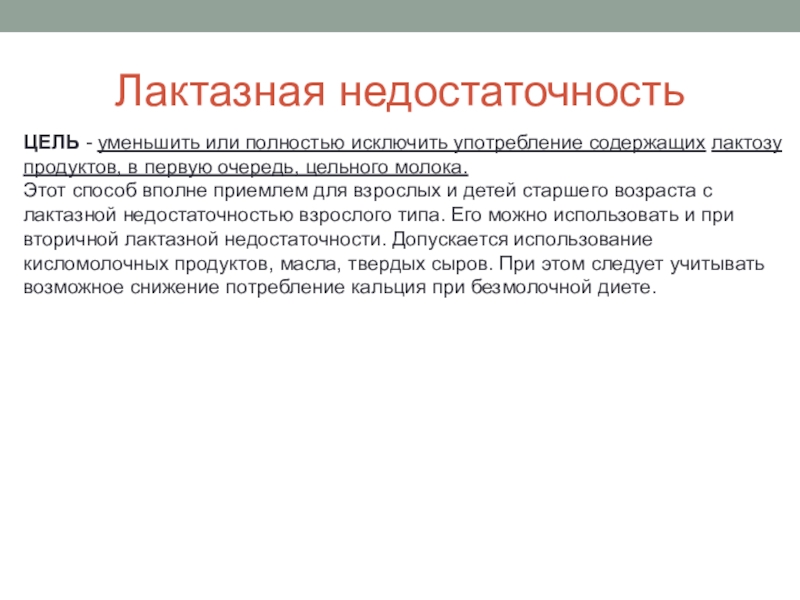 ЦЕЛЬ - уменьшить или полностью исключить употребление содержащих лактозу