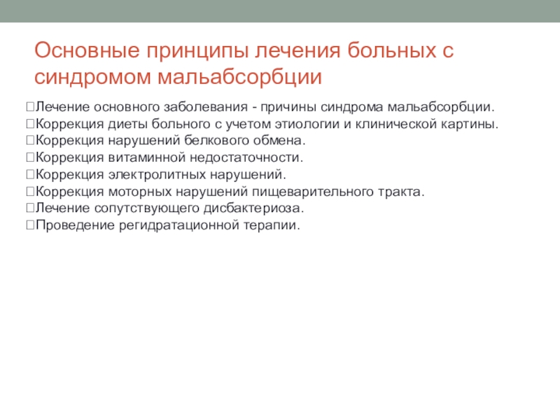 • Нарушение всасывания минеральных веществ: цинка (энтеропатический акродерматит), марганца, меди (болезнь Менкеса), фосфора (семейный гипофосфатемический рахит), повышенное всасывание железа (гемохроматоз) • Нарушение всасывания электролитов: врожденная хлоридорея