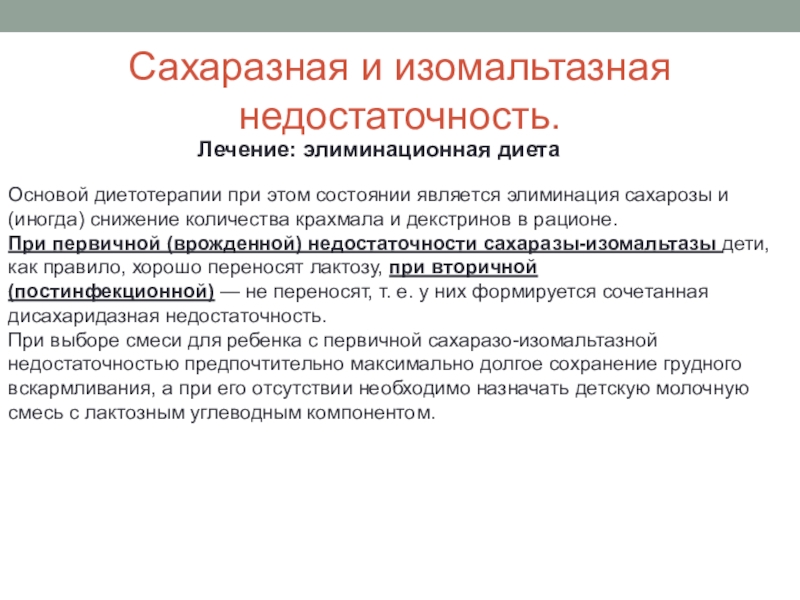 При первичной (врожденной) недостаточности сахаразы-изомальтазы дети, как правило, хорошо переносят лактозу, при вторичной