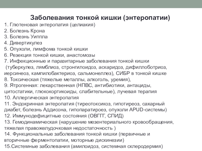 Слайд 5Заболевания тонкой кишки (энтеропатии)
