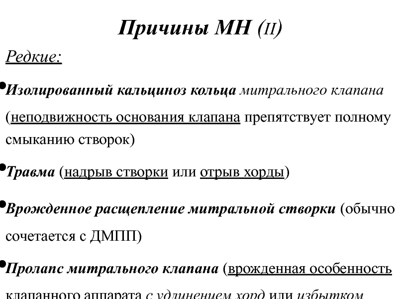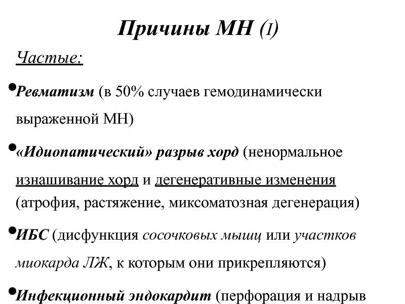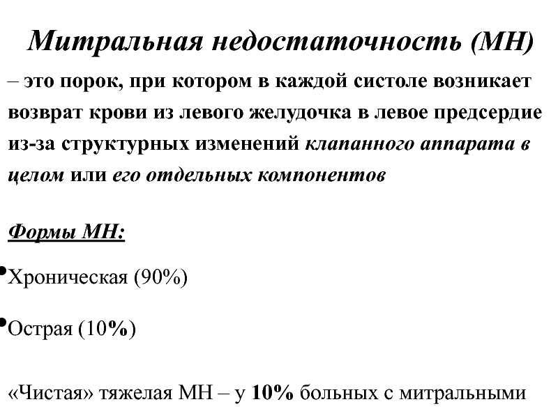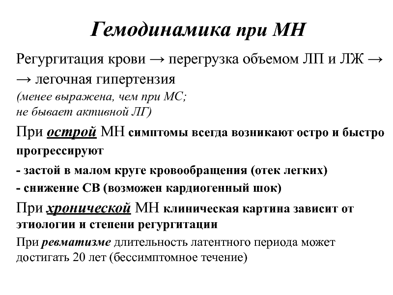 При хронической МН клиническая картина зависит от этиологии и степени регургитации