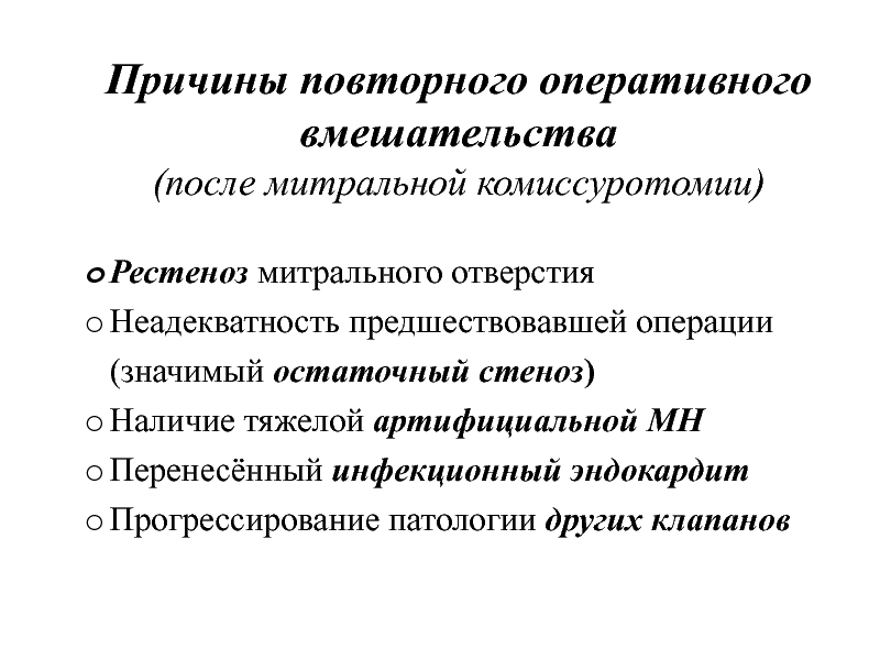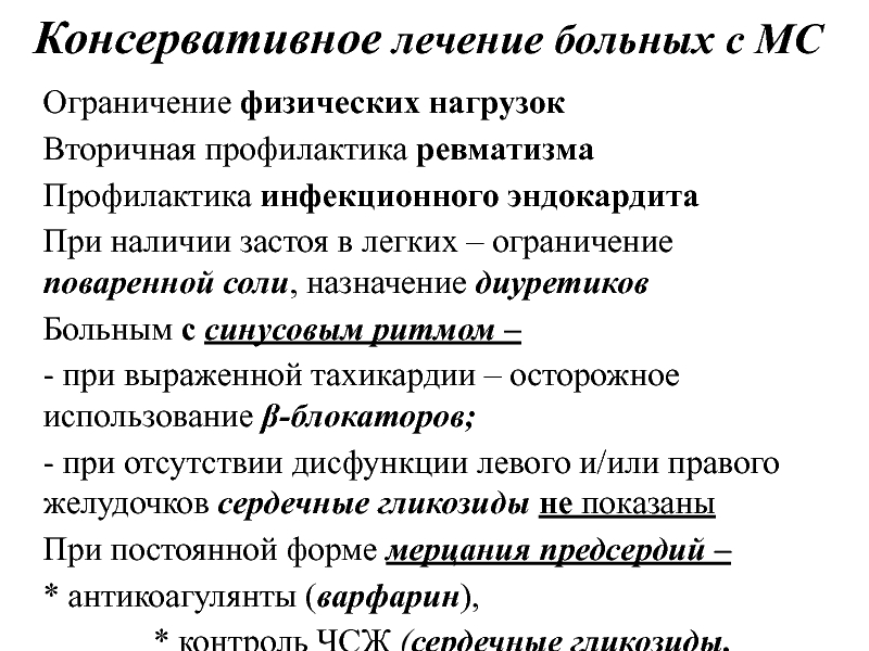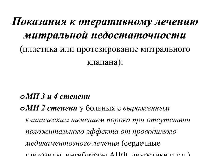 выраженным клиническим течением порока при отсутствии положительного эффекта от проводимого медикаментозного лечения (сердечные гликозиды, ингибиторы АПФ, диуретики и т.д.)