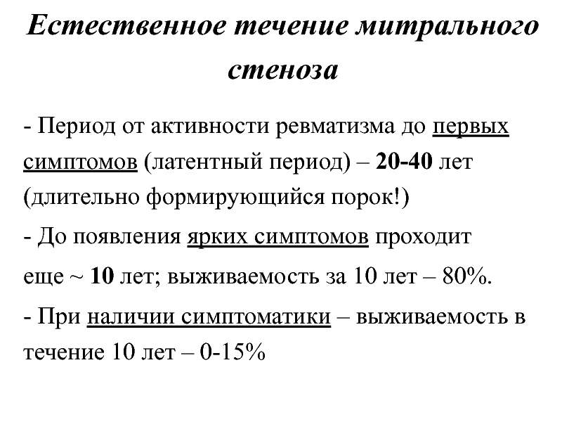 При ревматизме длительность латентного периода может достигать 20 лет (бессимптомное течение)