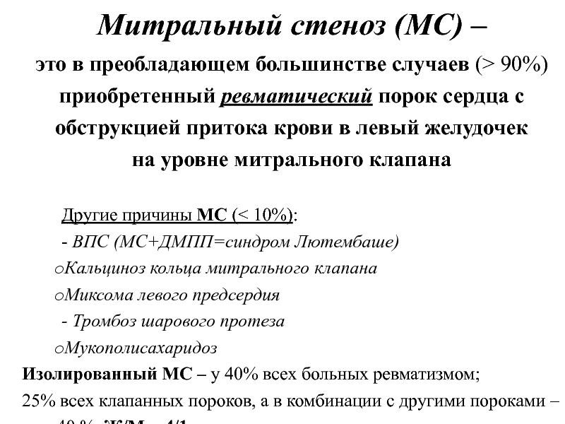 25% всех клапанных пороков, а в комбинации с другими пороками – еще 40 %. Ж/М = 4/1