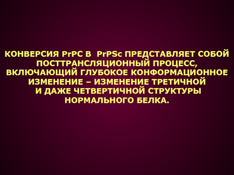 Слайд 12КОНВЕРСИЯ PrPC В PrPSc ПРЕДСТАВЛЯЕТ СОБОЙ
