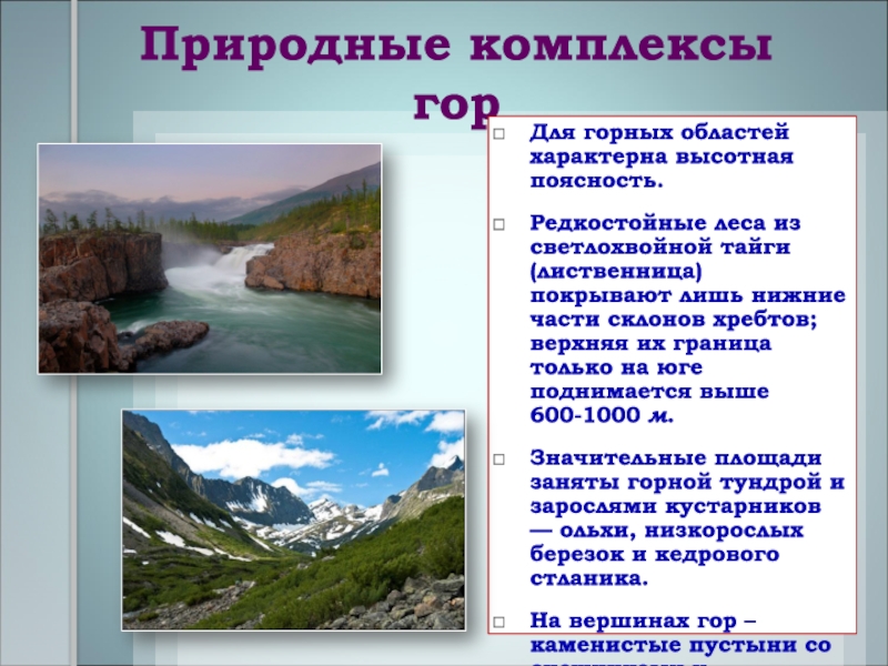 Слайд 10Природные комплексы гор