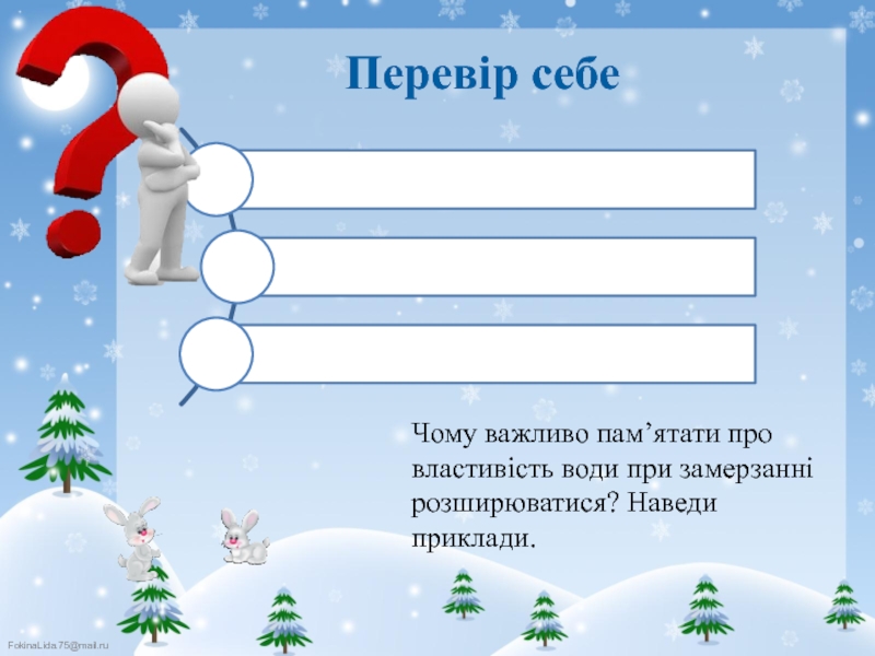 Узимку в сильні морози відбуваються аварії на водопроводах. Це результат дії води, що розширюється.