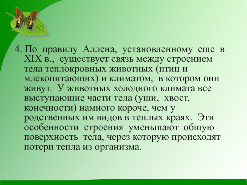 Слайд 404. По правилу Аллена, установленному еще в XIX в., существует