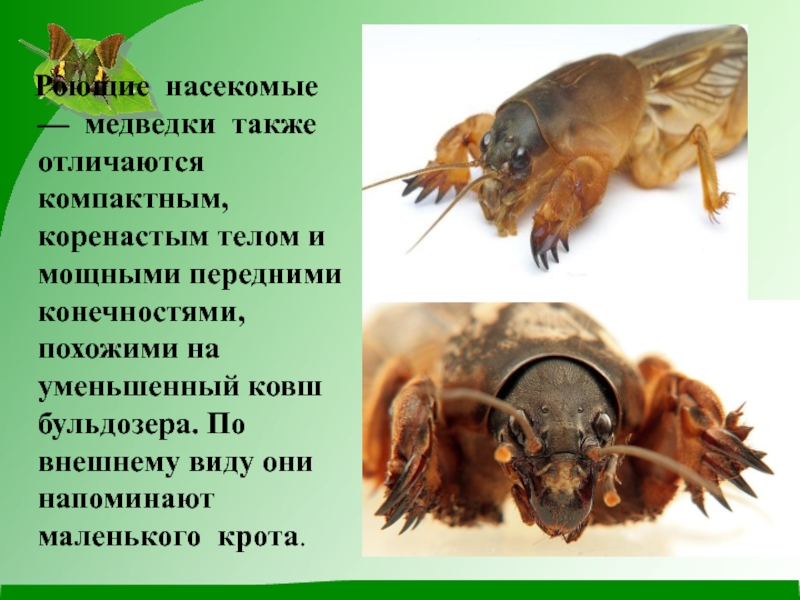 Слайд 11 Роющие насекомые — медведки также отличаются компактным, коренастым