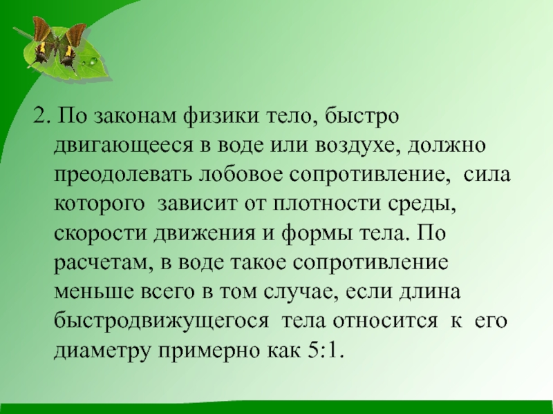 Слайд 342. По законам физики тело, быстро двигающееся в воде или
