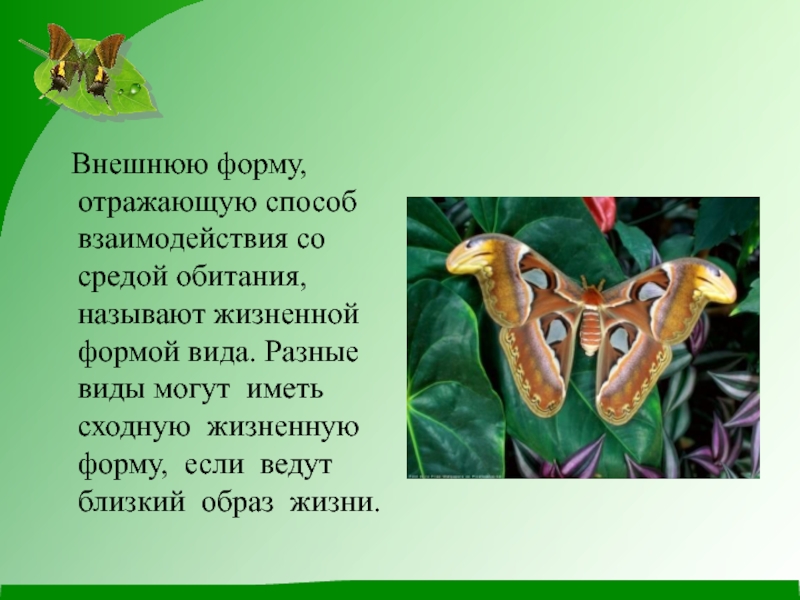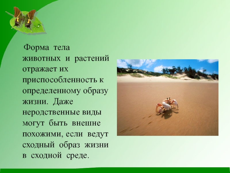 Слайд 28 Внешнюю форму, отражающую способ взаимодействия со средой обитания,