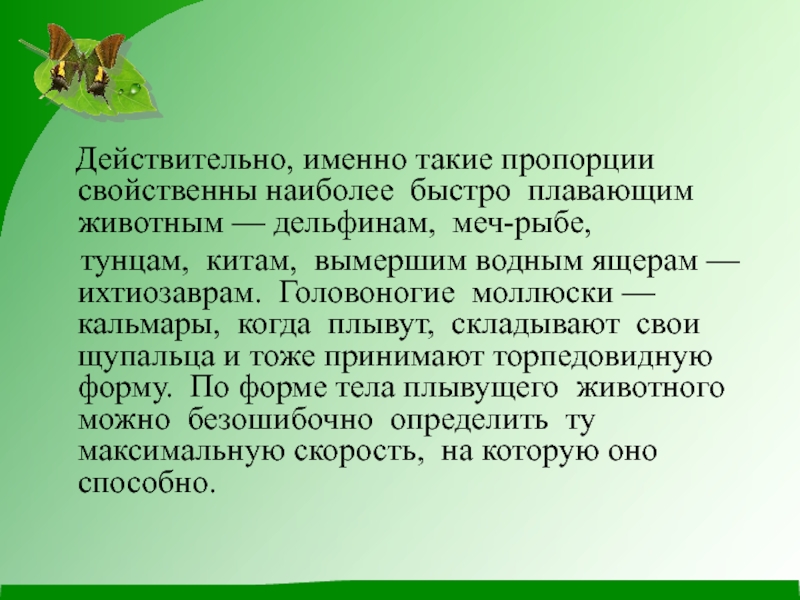 Слайд 35 Действительно, именно такие пропорции свойственны наиболее быстро плавающим