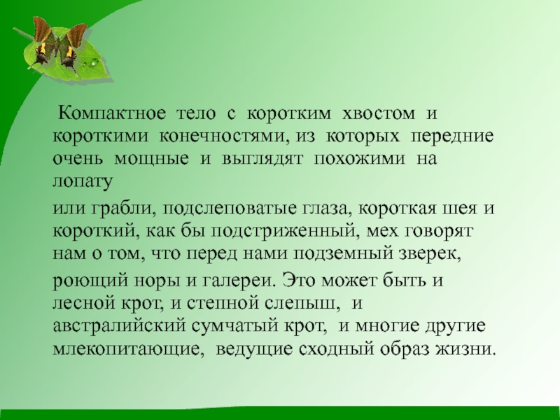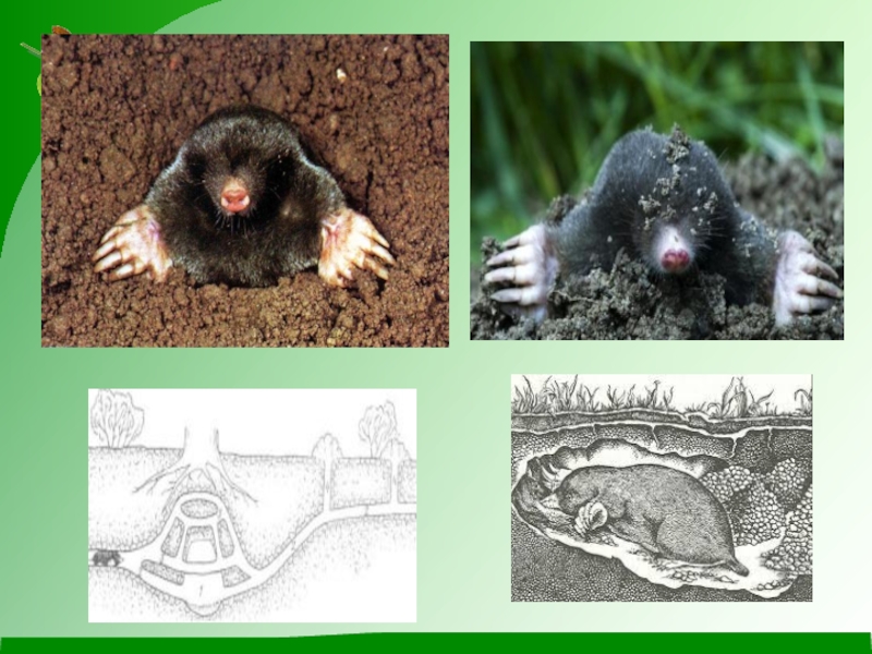 или грабли, подслеповатые глаза, короткая шея и короткий, как бы подстриженный, мех говорят нам о том, что перед нами подземный зверек,