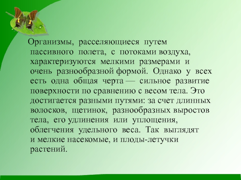 Слайд 16 Организмы, расселяющиеся путем пассивного полета, с потоками воздуха,