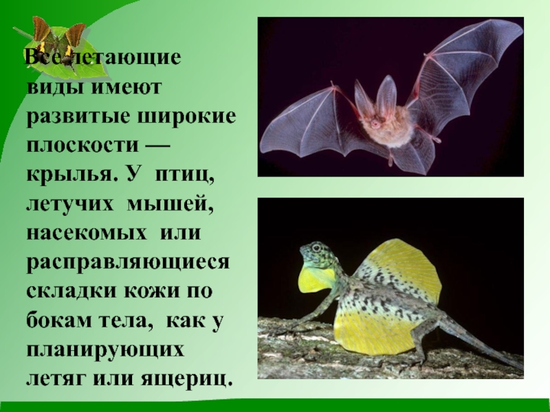 Слайд 12 Все летающие виды имеют развитые широкие плоскости —