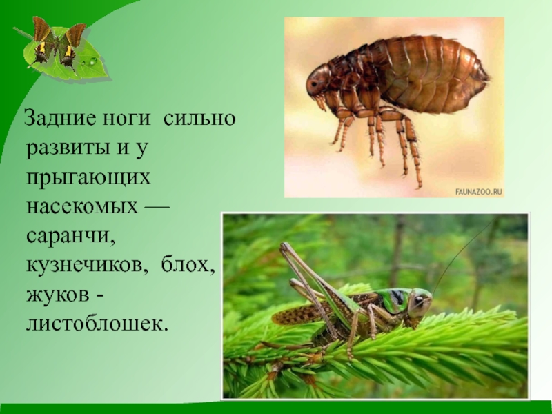 Слайд 7 Задние ноги сильно развиты и у прыгающих насекомых