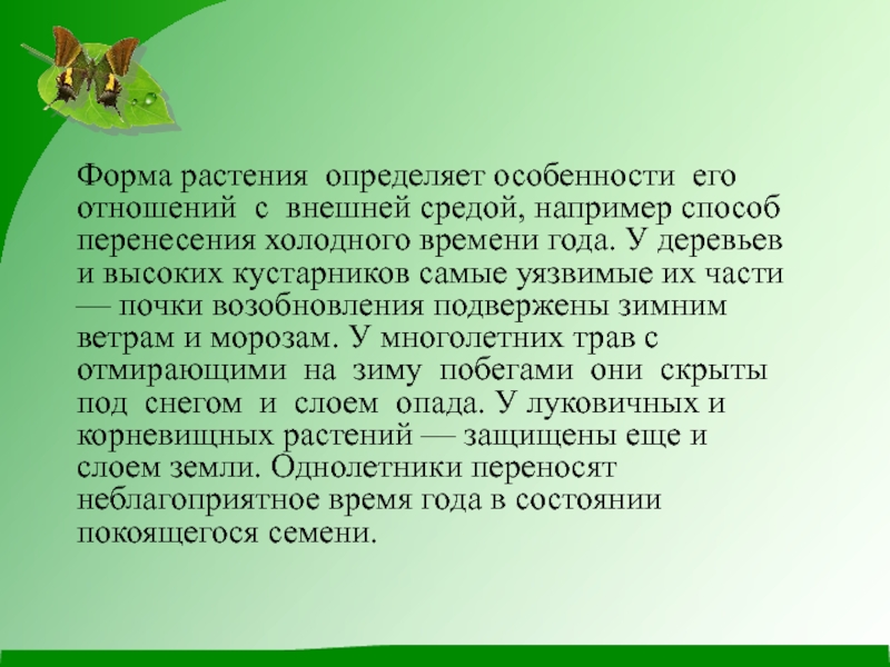 Слайд 22 Форма растения определяет особенности его отношений с внешней