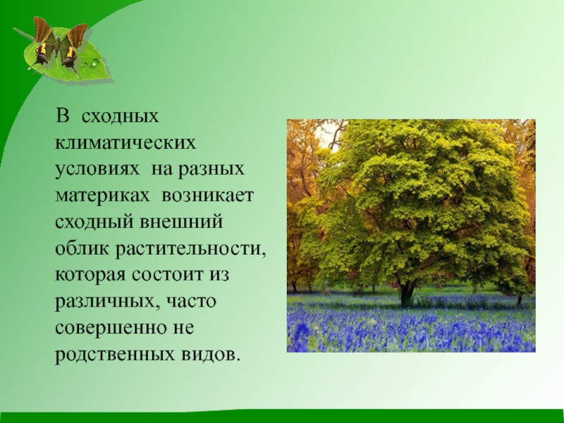 Слайд 27 В сходных климатических условиях на разных материках возникает