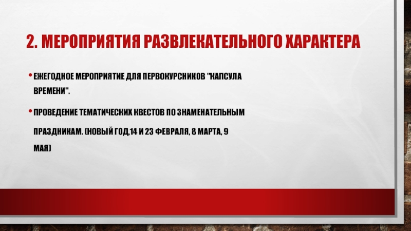 Слайд 32. Мероприятия развлекательного характера