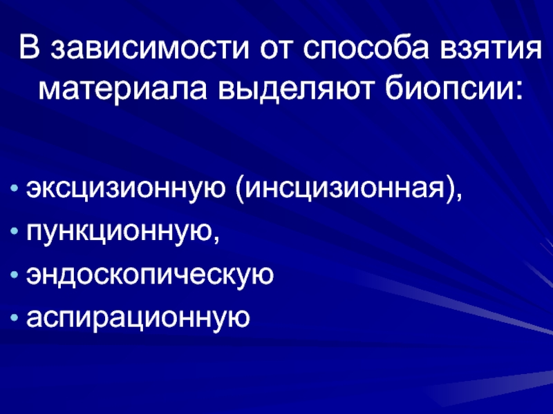 Слайд 11В зависимости от способа взятия материала выделяют биопсии: