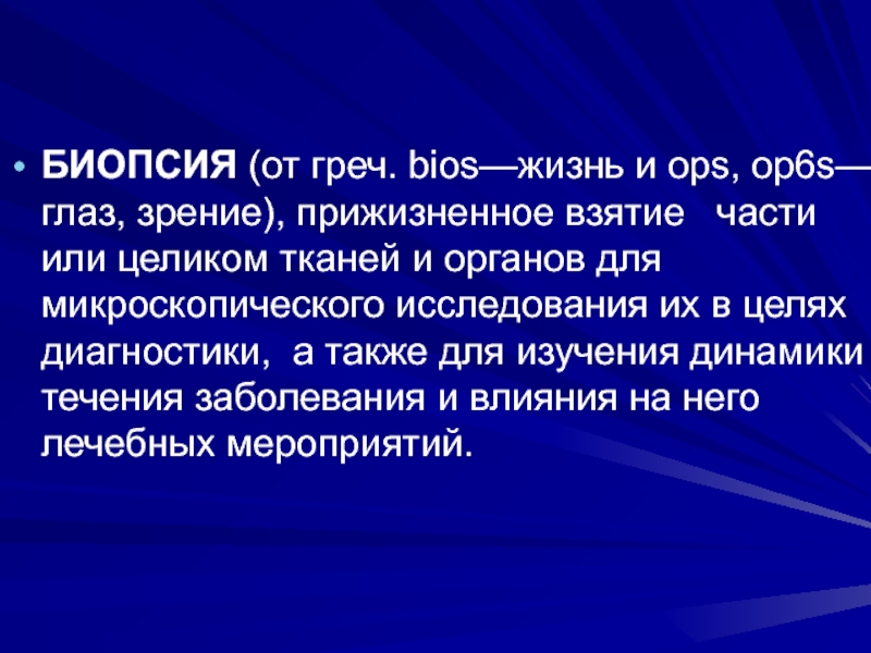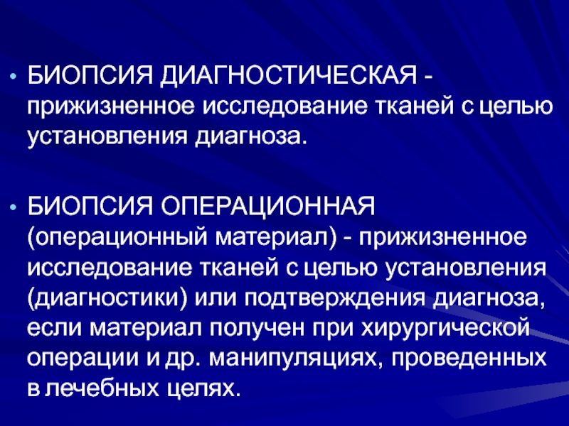 Слайд 7БИОПСИЯ ДИАГНОСТИЧЕСКАЯ - прижизненное исследование тканей с целью установления диагноза.