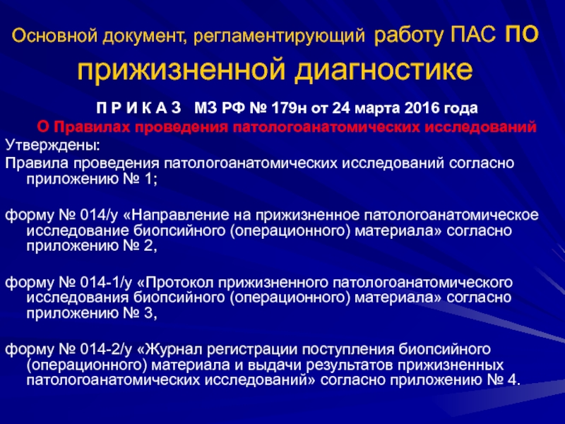 Слайд 5Основной документ, регламентирующий работу ПАС по прижизненной диагностике