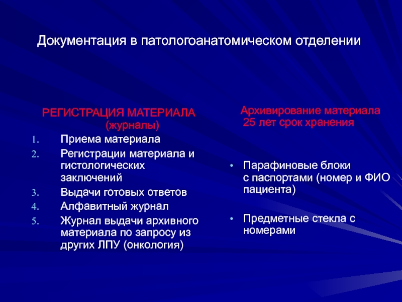 Документация в патологоанатомическом отделении