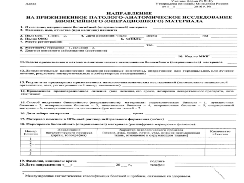 Порядок направления материала на прижизненное патологоанатомическое исследование.