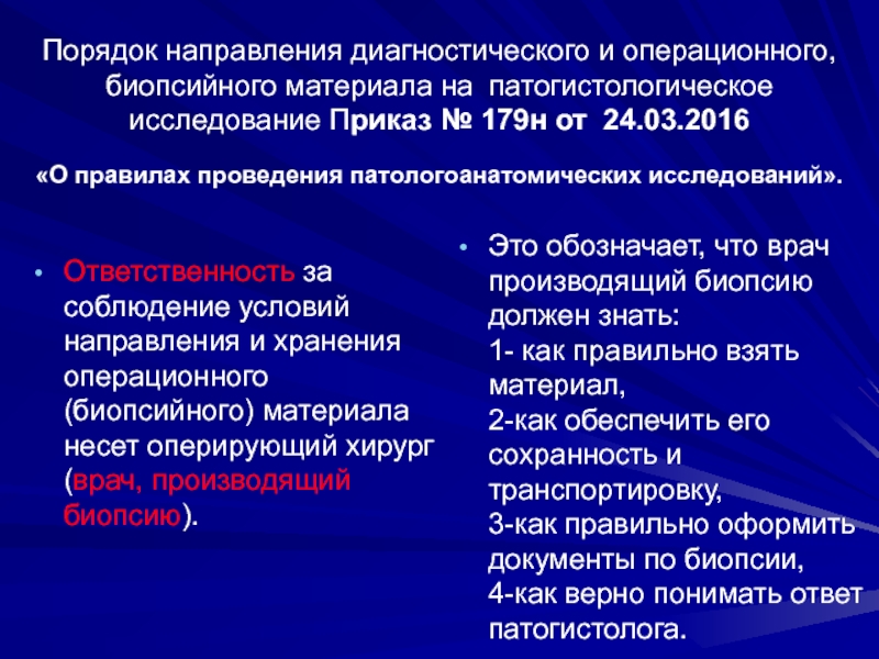 Слайд 12Порядок направления диагностического и операционного, биопсийного материала на патогистологическое исследование