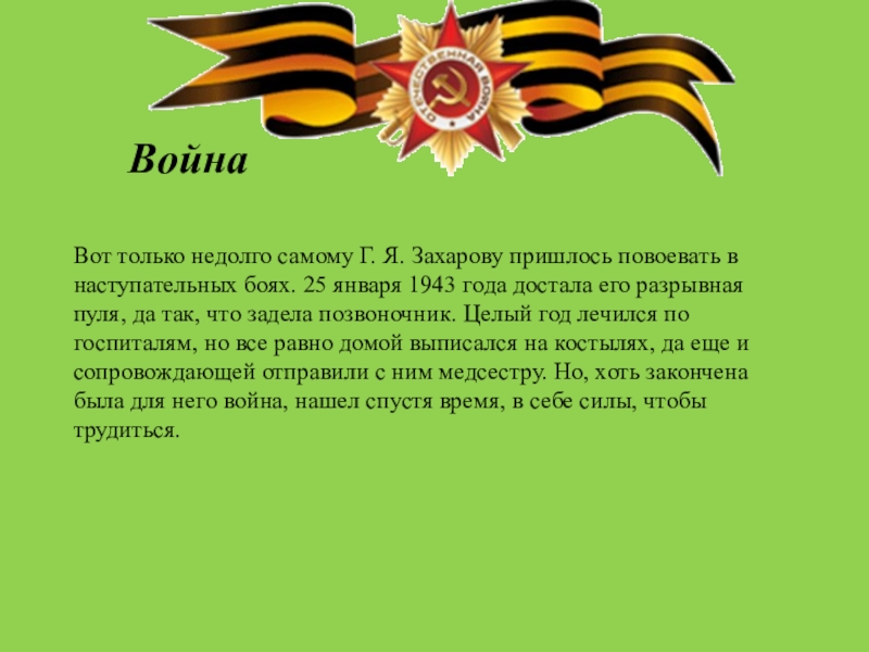 Вот только недолго самому Г. Я. Захарову пришлось повоевать в