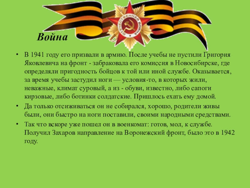 пустили Григория Яковлевича на фронт - забраковала его комиссия в