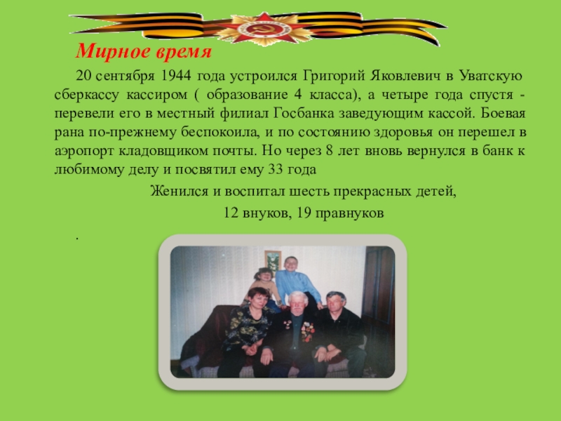 20 сентября 1944 года устроился Григорий Яковлевич в Уватскую