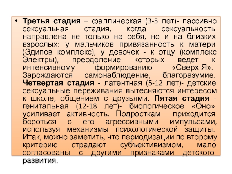 Слайд 8Третья стадия – фаллическая (3-5 лет)- пассивно сексуальная стадия, когда
