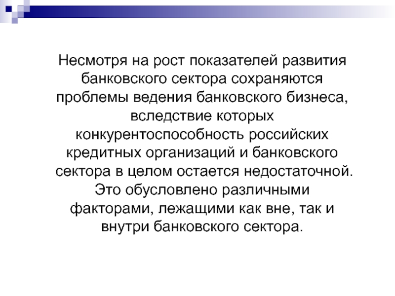 сектора в целом остается недостаточной. Это обусловлено различными факторами, лежащими как вне, так и внутри банковского сектора.