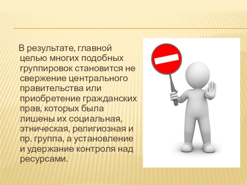 Слайд 16 В результате, главной целью многих подобных группировок становится