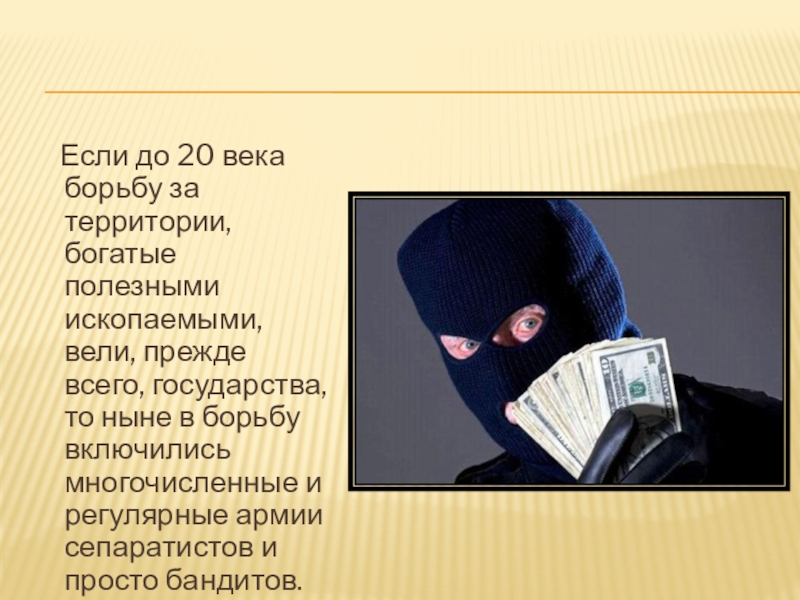 Слайд 9 Если до 20 века борьбу за территории, богатые