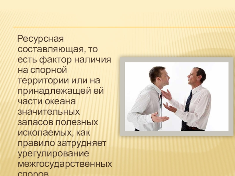 Слайд 13 Ресурсная составляющая, то есть фактор наличия на спорной