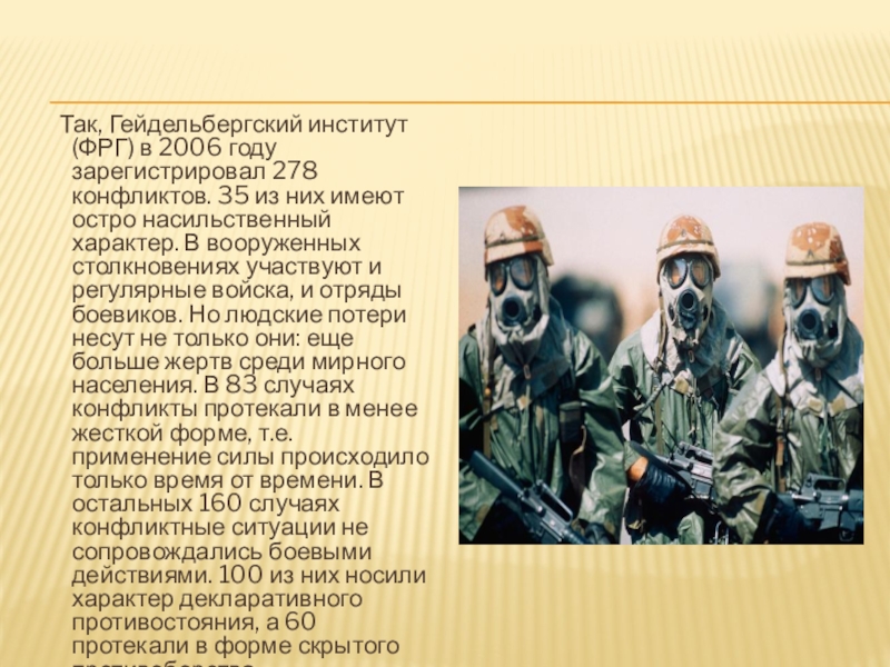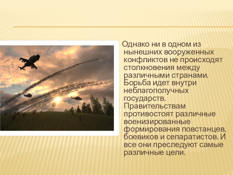 Слайд 8 Однако ни в одном из нынешних вооруженных конфликтов