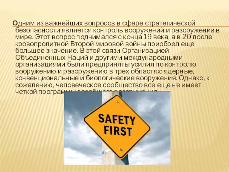 Слайд 21 Одним из важнейших вопросов в сфере стратегической безопасности