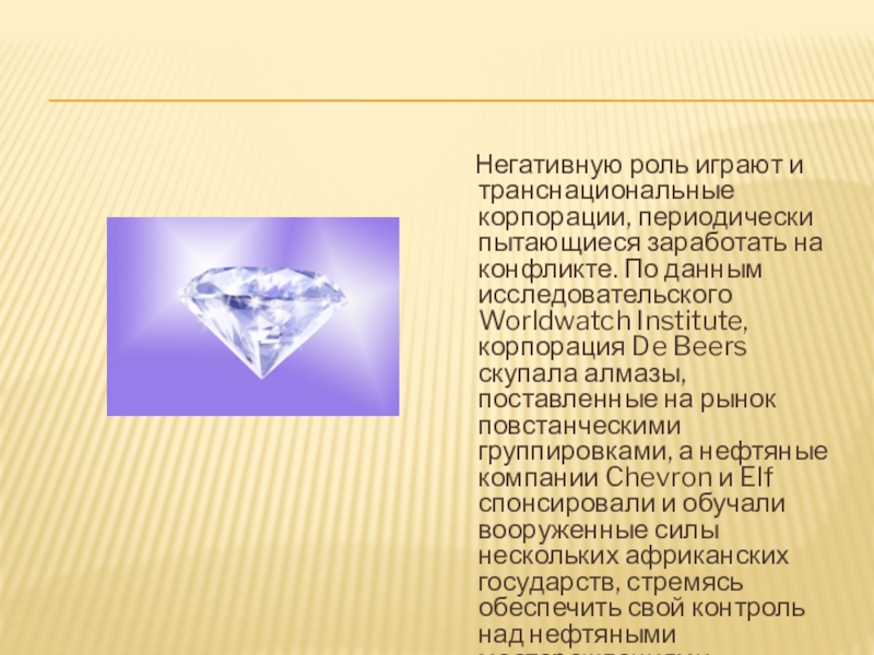 пытающиеся заработать на конфликте. По данным исследовательского Worldwatch Institute, корпорация