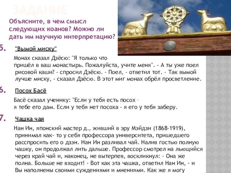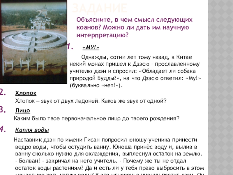 Объясните, в чем смысл следующих коанов? Можно ли дать им