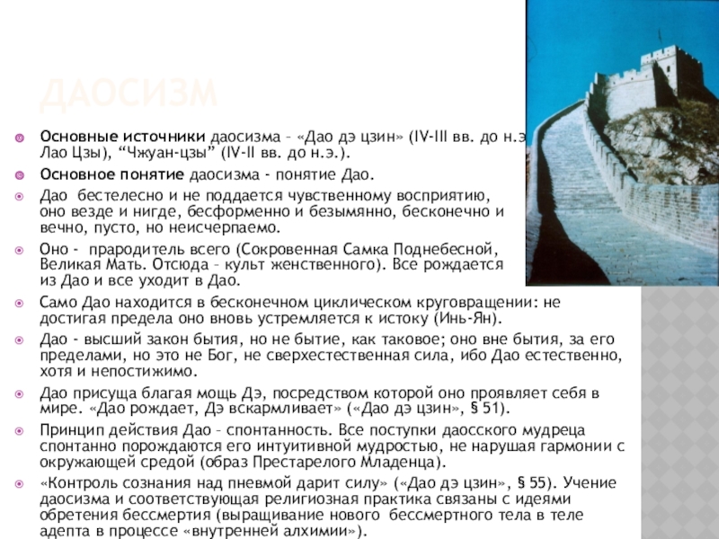 Основные источники даосизма – «Дао дэ цзин» (IV-III вв. до