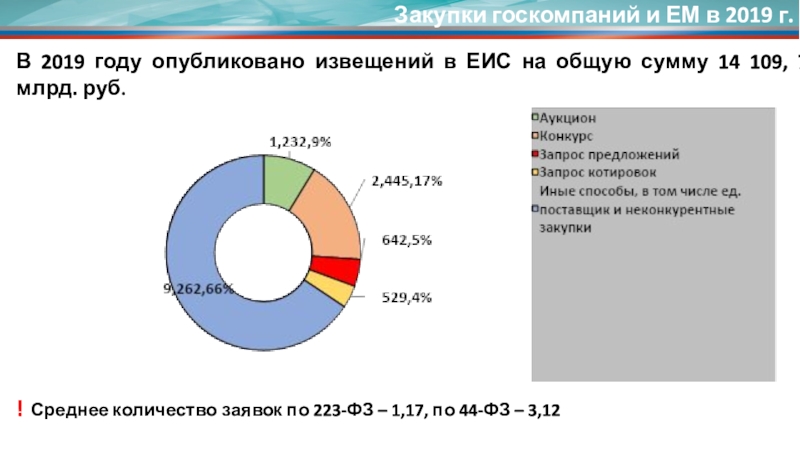 ! Среднее количество заявок по 223-ФЗ – 1,17, по 44-ФЗ – 3,12