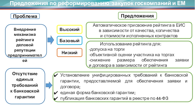 Установление унифицированных требований к банковской гарантии, предоставляемой для обеспечения заявки и договора;