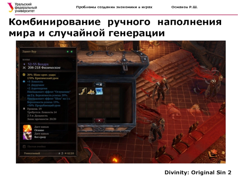 Комбинирование ручного наполнения мира и случайной генерацииDivinity: Original Sin 2Проблемы создания экономики в играх		Османов Р.Ш.