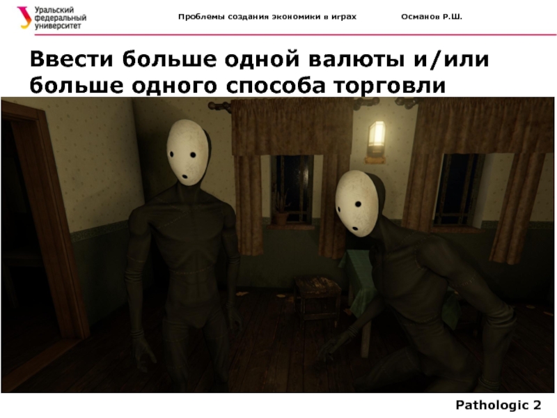 Ввести больше одной валюты и/или больше одного способа торговлиPathologic 2Проблемы создания экономики в играх		Османов Р.Ш.