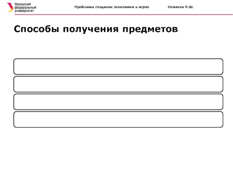 Проблемы создания экономики в играх		Османов Р.Ш.Способы получения предметов