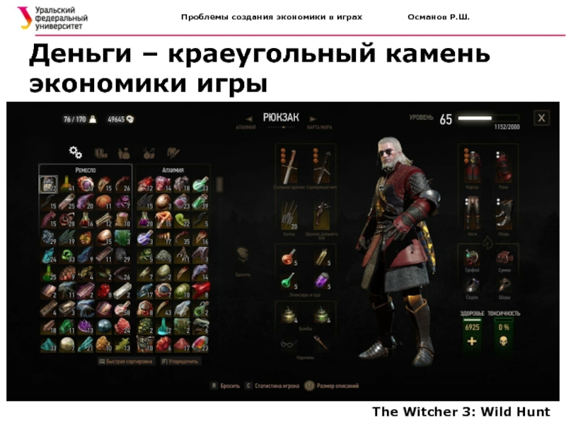 Деньги – краеугольный камень экономики игрыThe Witcher 3: Wild HuntПроблемы создания экономики в играх		Османов Р.Ш.