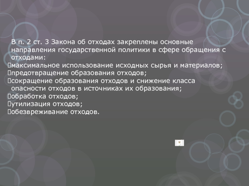 Слайд 27В п. 2 ст. 3 Закона об отходах закреплены основные