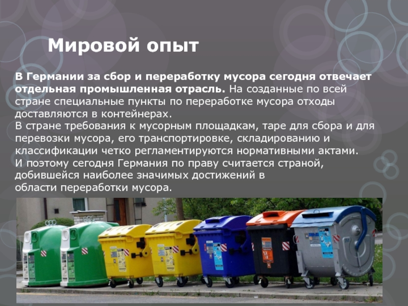 И поэтому сегодня Германия по праву считается страной, добившейся наиболее значимых достижений в области переработки мусора.